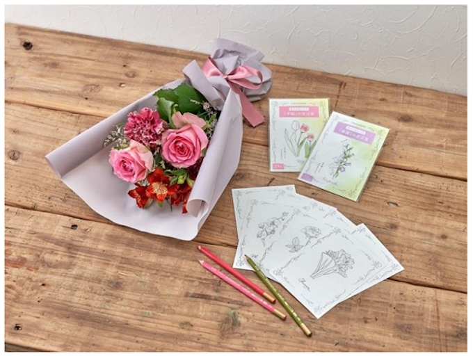 株式会社日比谷花壇は、手帳を中心とした紙製品メーカー、ダイゴー株式会社とコラボレーションした「花の塗り絵ポストカード」と花束のセット商品の注文受付を、7月14日(水)から、日比谷花壇オンラインショッピングサイト(https://www.hibiyakadan.com/)で開始します。